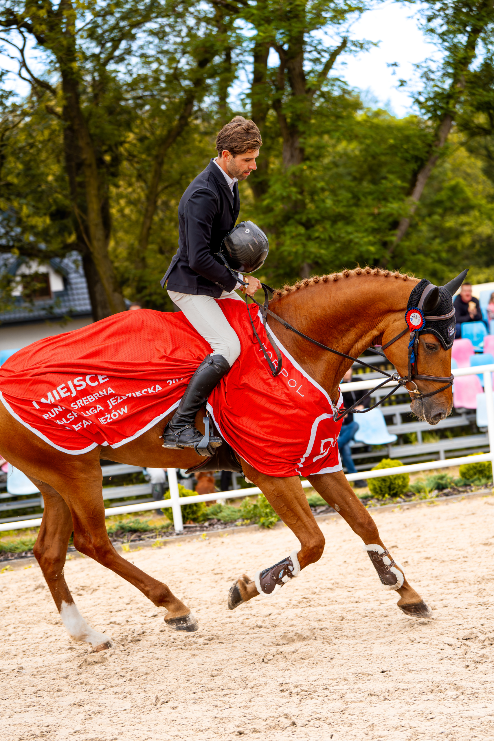 „Myślę, że parkur był bardzo dobrze dostosowany do poziomu, aczkolwiek dość wymagający technicznie – arena w Jeżowie nie jest za duża i gospodarz toru musi się trochę „nagimnastykować”, ale też konie dzięki temu mogą wykazać się sprytem i bystrością. Mi było łatwiej, bo z moimi końmi znam się już dość dobrze i wiedziałem, czego mogę się po nich spodziewać.” – mówił zwycięzca – „W rozgrywce najpierw jechałem Quilottą – to duży koń, pogoda była też przedburzowa, co zazwyczaj jej nie służy i zrobiła dwie zrzutki pod sam koniec parkuru. Wiedziałem, że drugim koniem [Valencia Volo] muszę zaryzykować. On zrobił błąd na drugiej przeszkodzie – może zacząłem zbyt spokojnie – on jest prawdziwym wojownikiem i lubi walczyć, więc może sam się zdziwił. Po tym pokazałem mu, że musimy zacząć już szybciej galopować i dało to efekt w postaci dobrego czasu. Od wielu lat wspieramy swoją obecnością Polską Ligę Jeździecką, jesteśmy wdzięczni organizatorom za to, że taki cykl jest w Polsce organizowany i że możemy uczestniczyć w Srebrnej i Złotej rundzie. To dla nas ważne wydarzenie, więc będziemy kontynuować rywalizację. Za tydzień będziemy w Bogusławicach, później chwila odpoczynku dla koni i na pewno wystartujemy w Sosnowicach.”
